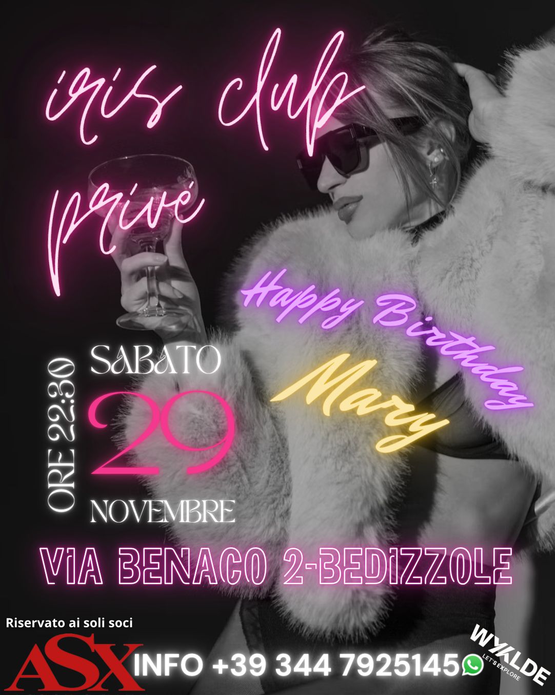 Sabato 29 Novembre, l'Iris Club Privé si accende per celebrare il compleanno della nostra splendida socia Mary.